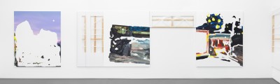 Between picture, picture-object, and site-specific installations, Geisler‘s works circle the field of expanded painting. In his painterly works he deals with ambivalent phenomena of our present time. Thereby, he strikes a delicate balance between signs with positive and negative connotations. His works open up questions about the intersections of space and time, privilege and disadvantage, construction and destruction. Since 2021, Geisler has been constantly working on his series of works entitled „Habitats.“ He uses various types of tents as material carrier for his paintings. Overstretched, distorted, and covered with dense layers of paint, the commercially available pop-up tents hang on the walls like paintings. The original form of the leisure dwellings can only be guessed at in places. We encounter the works as a still image, as a trace of a completed action. They are relics of the recent past and refer to the large and necessary mass movements of the 20th and 21st century, tourism and displacement, work or climate migration.